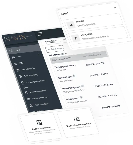 Navix Health's seamless platform, powered by NavixAI, transforms how you manage your behavioral health program or private practice. Spend less time on administrative tasks and more time creating positive patient experiences.